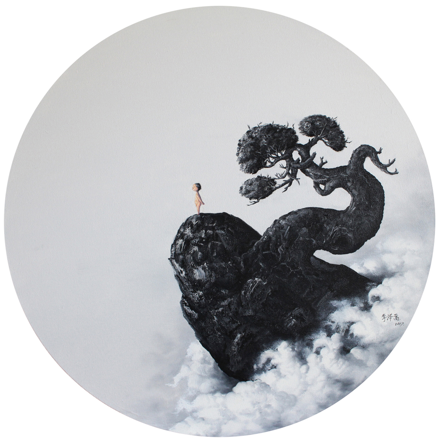 者在画面处理上使用简单而经典的黑,白,灰色,并以中国画的图式和中国话的白话语言环境来表达他的作品。作品中的“小人”外在寓意现实生活中人的孤独,脆弱和无助之感,而内在表现了人的情感和精神是有着无限大的力量与境界的,就如大自然一样。在李泽嵩的世界里可以体会到幽默、清雅、安宁的精神境界以及人在自然中的孤独与陪伴并存的情绪……